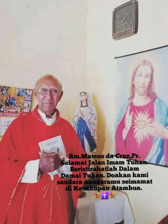 Belum kering air mata datang lagi berita duka, seorang imam Tuhan pergi lagi untuk selamanya. Dialah Romo Mateus do Rosario da Cruz, Pr, Vikaris Yudicial Keuskupan Atambua, Senin (26 April 2021 pkl. 23.27) di Rumah Sakit Sito Husada, Atambua. Untuk kedua kalinya Bapa Uskup berdiri menunggu seorang imamnya yang meninggal dunia. Sebuah penantian untuk urusan pemakaman  di Masmae yang memakan waktu cukup lama. Tapi tidak apa-apa asalkan hambaNya Romo Mateus dimakamkan secara pantas. Memang menyakitkan, namun kali ini rupanya karena pengaruh situasi membuat diskusi para imam lebih banyak menyentuh kepada keputusan untuk pemakaman Rm. Mateus di Masmae. Ada berbagai kesan mengenai siapa Romo Mateus atau yang biasa dipanggil Amo Mateus. Kesan pertama dikirimkan oleh P. Salvator Towary SVD sebagai berikut:”Mengenang almarhum Amu Mateus da Cruz. Pada suatu hari Minggu sore, beliau pulang dari Eban dan mampir di rumah retret SVD Noemeto. Beliau datang tanpa informasi. Mobil merah parkir dan beliau turun sambil tersenyum dan tertawa serta minta maaf karena tidak beri kabar. Kami berdua saja dan beliau cuma mampir untuk share tentang betapa dashyatnya kekuatan Kerahiman Tuhan bagi dirinya sebagai imam.Ia menuturkan, “Kerahiman Tuhan tidak ada batas!” Katanya semua imam adalah pelaku utama Kerahiman Allah melalui pelayanan sakramen-sakramen suci (cura animarum) khususnya dalam sakramen Tobat dan Ekaristi serta Pengurapan Orang sakit. Beliau berdevosi Kerahiman Ilahi sejak Seminari Tinggi ketika diberikan oleh seorang pastor asal Portugal. Setiap harinya beliau mendoakan jiwa semua arwah pada jam 3, jam Kerahiman. Setelah menjadi imam, beliau selalu merayakan misa arwah bagi intensi khusus pada jam 3 sore. Sungguh beliau seorang Rasul Kerahiman Ilahi. Buah dari devosinya nampak dalam kasihnya yang mendalam bagi keluarga yang bermasalah yang setiap hari Rabu menjumpai beliau di Kantor Tribunal Keuskupan Atambua. Sebelum pamit pulang, beliau minta untuk masuk di ruang doa saya. Kami berdua masuk dan beliau mengeluarkan 1 botol minyak zaitun ukuran 1 liter.Beliau minta saya tolong berkat minyak tersebut. Saya kaget jika seorang imam senior dan saleh minta saya berkat. Hening sejenak dan saya memakai stola lalu memberkati minyak zaitunnya. Lebih terkejut lagi, beliau berlutut dan minta berkat. Saya pun memberikan berkat, lalu beliau pamit pulang. Amu Mateus, Selamat jalan. Yesus Raja Kerahiman Ilahi membuka pintu surga bagimu, rasul Kerahiman Ilahi”.