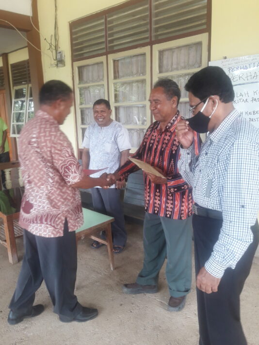 keuskupanatambua.org, – Hujan tiada berhenti sejak semalam. Seakan-akan alam pun tahu bahwa hari ini ada perpisahan disertai deraian air mata. Ada waktu untuk memulai sebuah karya, ada pula waktu untuk mengakhiri karya. Sang Pengkhotbah menyebutnya dengan istilah, “Segala sesuatu ada waktunya!” Hari ini boleh tertulis dalam sejarah Paroki Santo Antonius Padua Nela. Setelah berkarya lebih dari 25 tahun sebagai Katekis/Sekretaris Paroki, Bapak Zakarias Bnani resmi dilepaspisahkan dari tugasnya sebagai Sekretaris Paroki karena memasuki masa purnabakti disertai ucapan terima kasih atas jasa-jasanya selama ini.