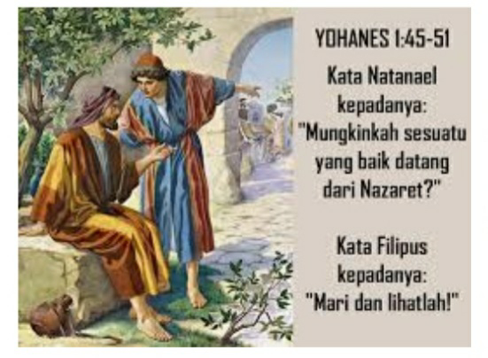 “Mungkinkah sesuatu yang baik datang dari Nazaret?” (Yoh 1:46). Inilah tanggapan Natanael yang terkesan kurang percaya. Namun dari pernyataan itu menampilkan kejujuran dan kepolosan seseorang yang ingin mengenal siapakah Yesus yang sesungguhnya.