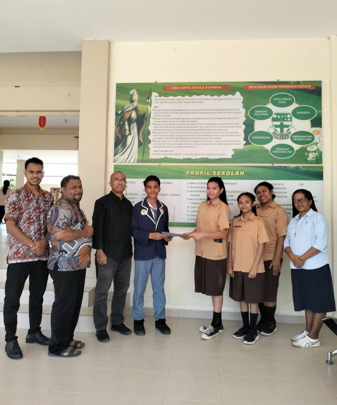 Selain penandatanganan MoU, kegiatan juga diisi dengan serah terima Majalah Dinding berbahasa Inggris oleh Ketua OSIS SMA Swasta Seminari Lalian, Stefanus Gerard Tae Seran, kepada OSIS SMA Sta. Angela Atambua. Serah terima tersebut disaksikan para guru pendamping OSIS dari kedua sekolah.