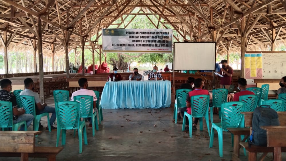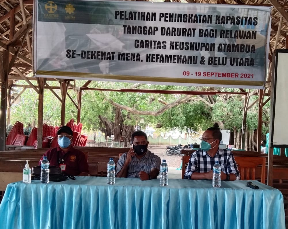 Keuskupanatambua.org, Peduli penanganan bencana, Caritas Indonesia dalam jaringan kerja sama dengan Caritas Keuskupan Atambua, lakukan pelatihan peningkatan kapasitas tanggap darurat bagi relawan se-Dekenat Mena. Kegiatan ini akan berlangsung selama tiga hari, mulai tanggal 09-11 September 2021, bertempat di Pusat Dekenat Mena, Keuskupan Atambua, Kabupaten Timor Tengah Utara (TTU), Provinsi Nusa Tenggara Timur (NTT).