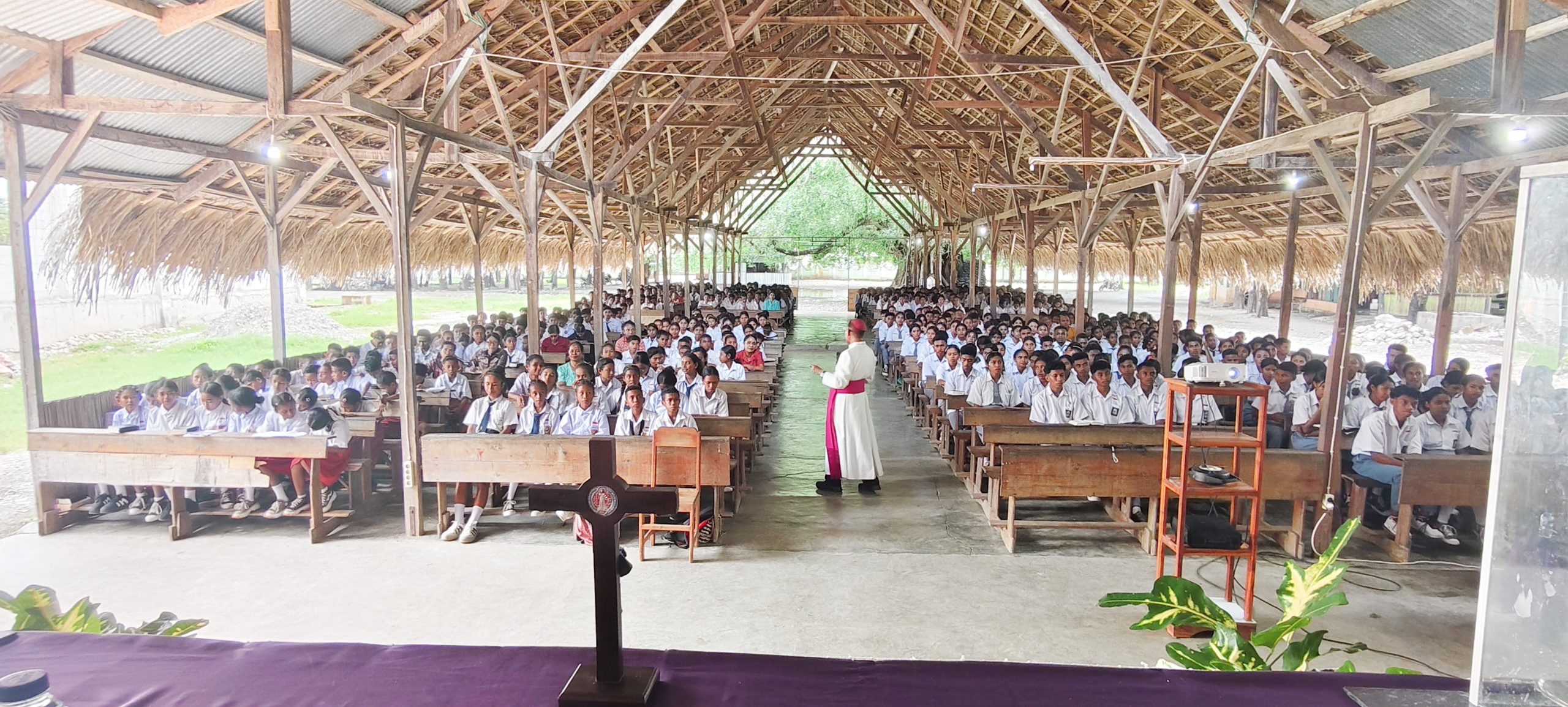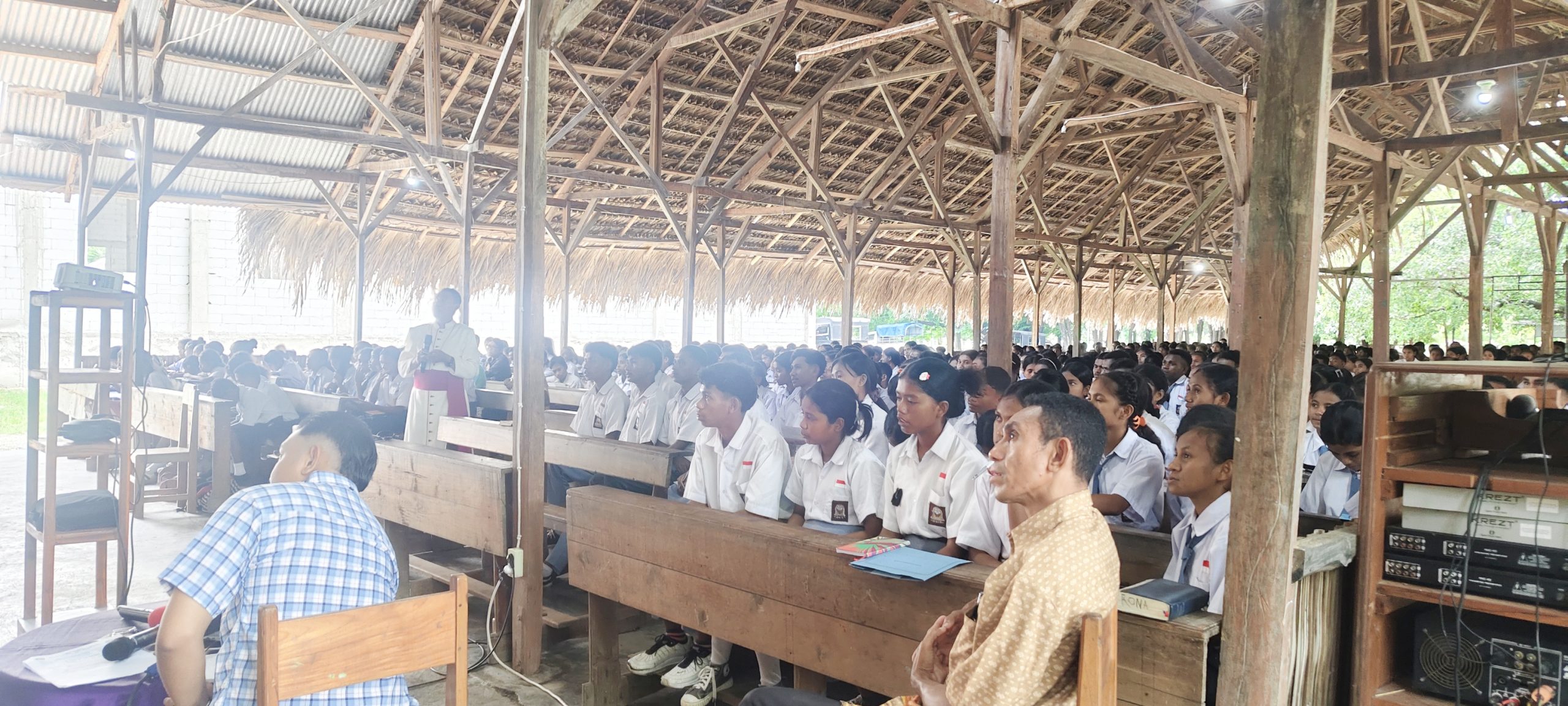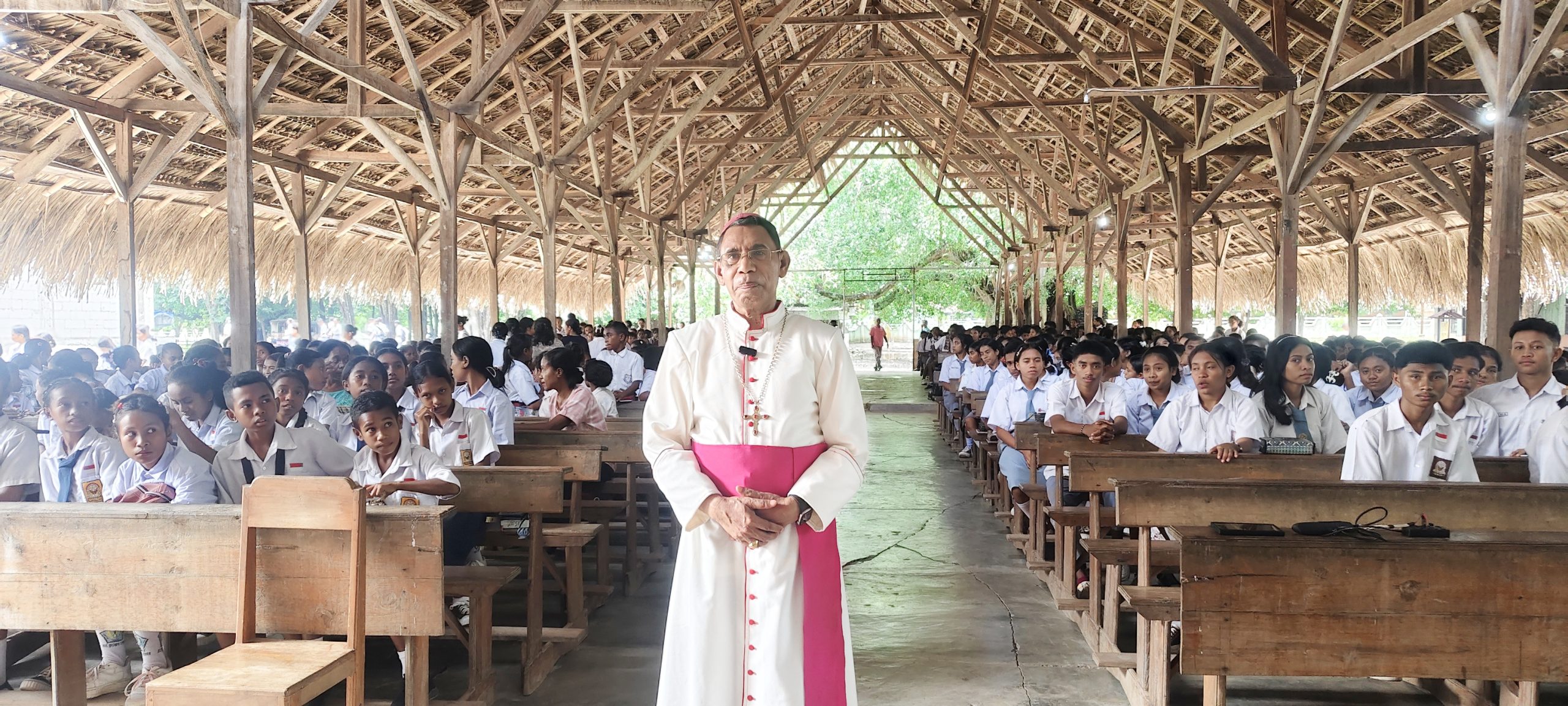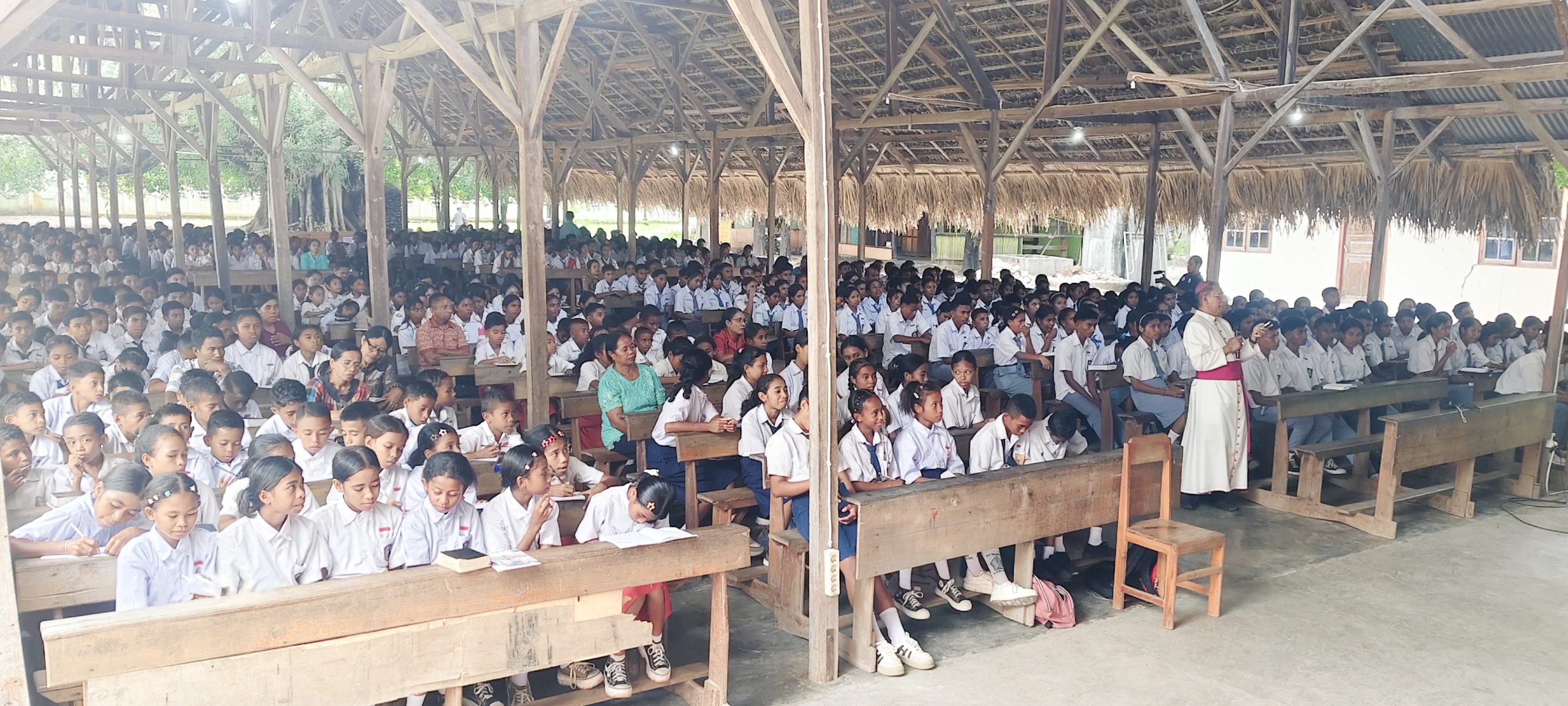 MENA, KeuskupanAtambua.org – Selasa 24 Februari 2026 — Mgr. Dominikus Saku memberikan renungan mimbar, ceramah, dan dialog bersama 471 siswa dari 20 sekolah se-Dekenat Mena yang didampingi 20 guru, dalam rekoleksi hari kedua yang berlangsung di Mena. Kegiatan ini merupakan kelanjutan rekoleksi hari pertama yang sebelumnya diikuti para romo, suster, frater, agen pastoral, tokoh pemerintah, adat, dan masyarakat. Seluruh rangkaian acara dikendalikan oleh Fr. Alfin Bria dan sesi dialog dimoderatori oleh Fr. Valdy Hani.